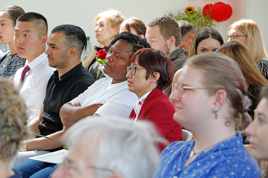 He was delighted with every single graduate who is now strengthening the care sector as a specialist. “We need every helping hand in nursing,” emphasized Ruckdeschel with a view to the nationwide shortage of skilled workers, underlining the central importance of every single graduate for the care of the population. He was particularly proud of the high proportion of people with an international background among the graduates. “Around 35 percent of employees in the BRK Bayreuth district association in the care sector have international roots. Nursing is therefore also the vanguard of society when it comes to integrating immigrants into work processes and social structures.”