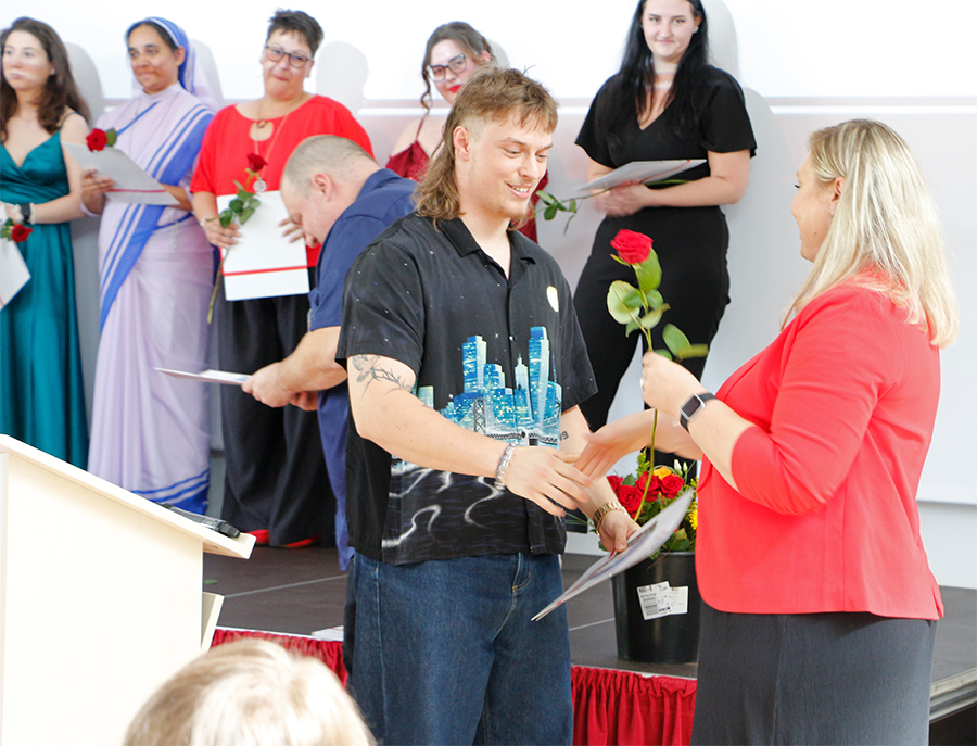 Zahn emphasized that graduation marks the start of a new phase in her life. “Nursing is not a profession where you just go with the flow. Thinking, feeling and shaping – that’s what’s required every day.” She also thanked the relatives and practical instructors as well as Christine Seeber, who, as coordinator for the practical assignments, had played a central role in organizing the practical training phases.